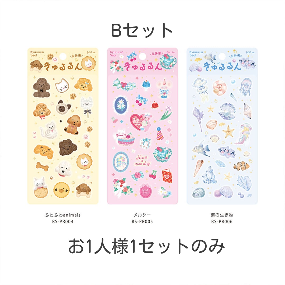 きゅるるんシール 「Bセット」 ふわふわanimals ・メルシー ・海の生き物 ※購入制限あり